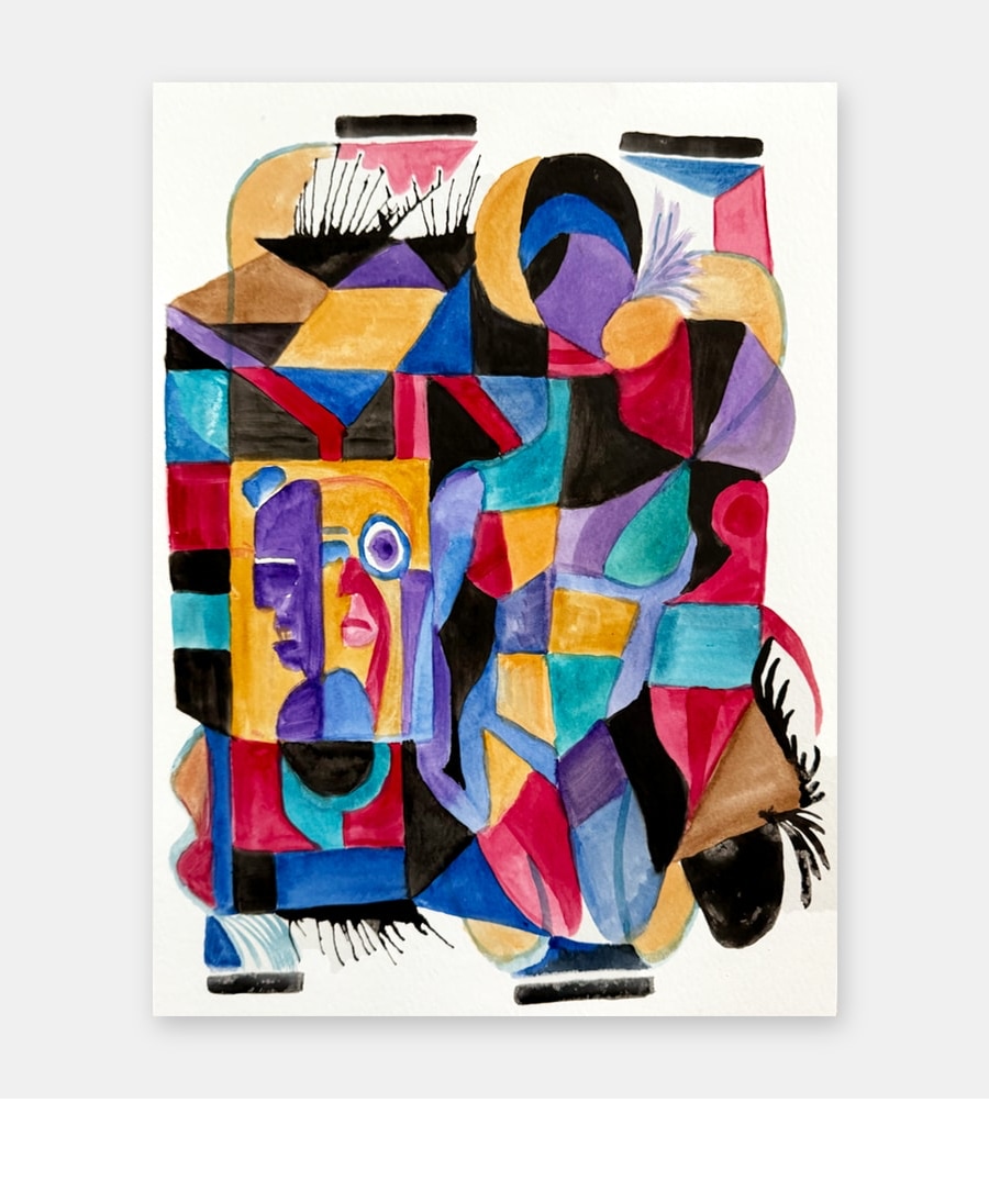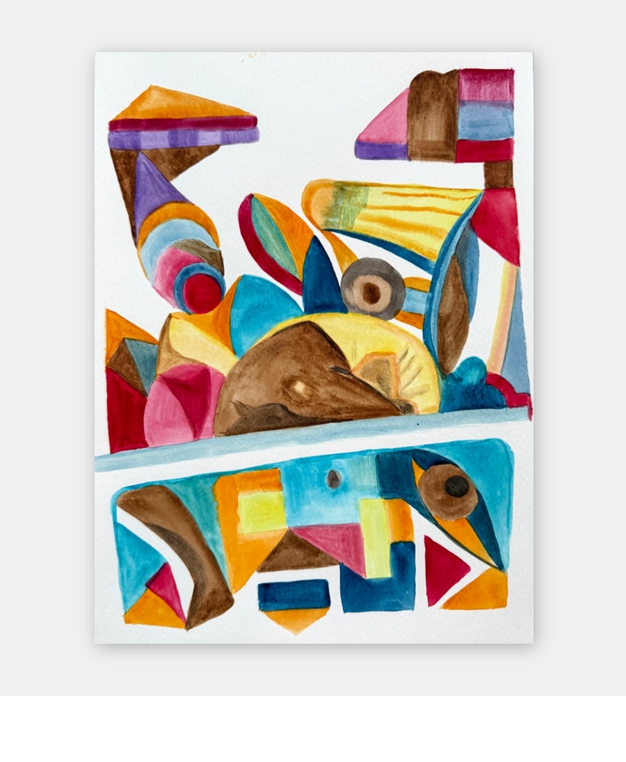 "Puzzle Pieces? Or Just Puzzled?" 2024, 12 x 9 inch watercolor painting on paper.