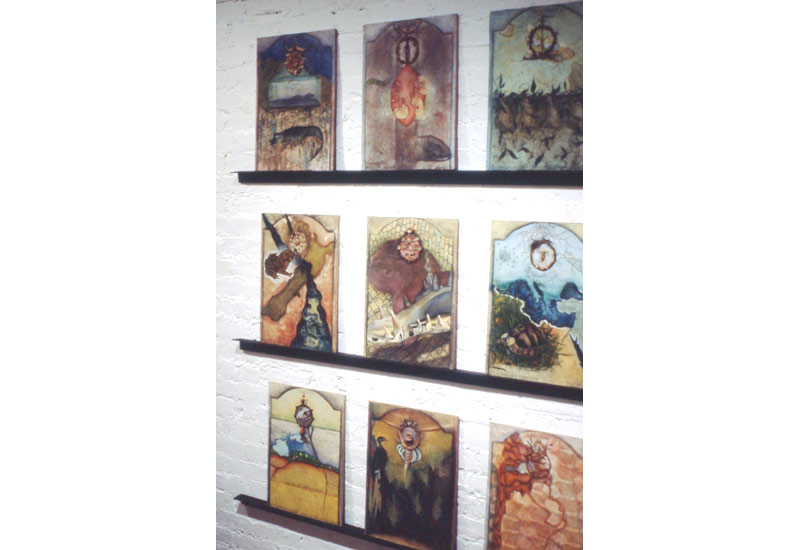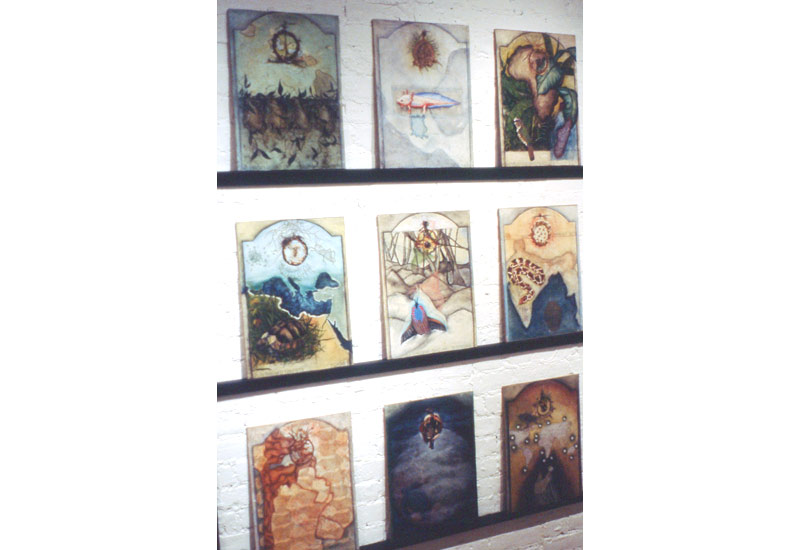 "The Issue of Irreversibility" is the title given to a series of mixed media paintings that Julia D'Amario has been working on for the past five years. This series has reached over fifty panels, of which fifteen will be displayed at the gallery. Each 16 x 12 inch painting on canvas mounted to wood becomes a potential grave marker for a specific animal on the Endangered Species List. The paintings depict the animal within an abstracted rendering of its environment, and at times this includes a reference to its geographic location. The animated energy of the paintings show us of the vitality of these animals, while the gravestone format forewarns a fate that can hopefully be spared.