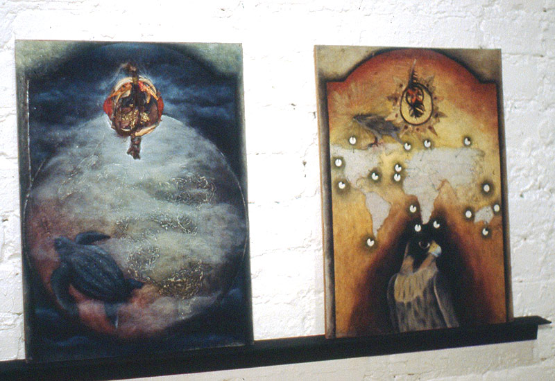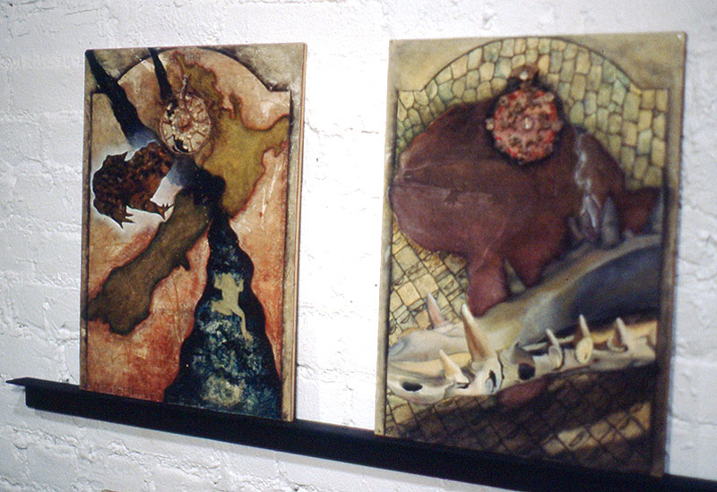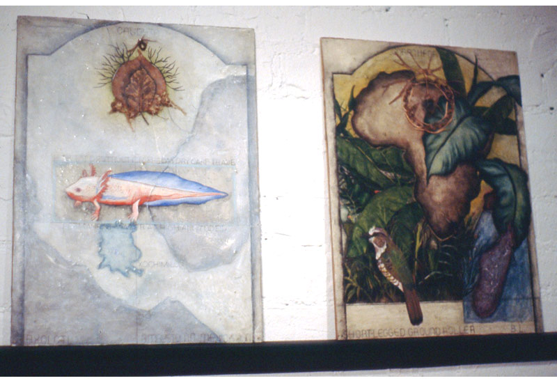 Axolotl, 1994. 16 x 12 inch oil and mixed media on canvas mounted to wood.